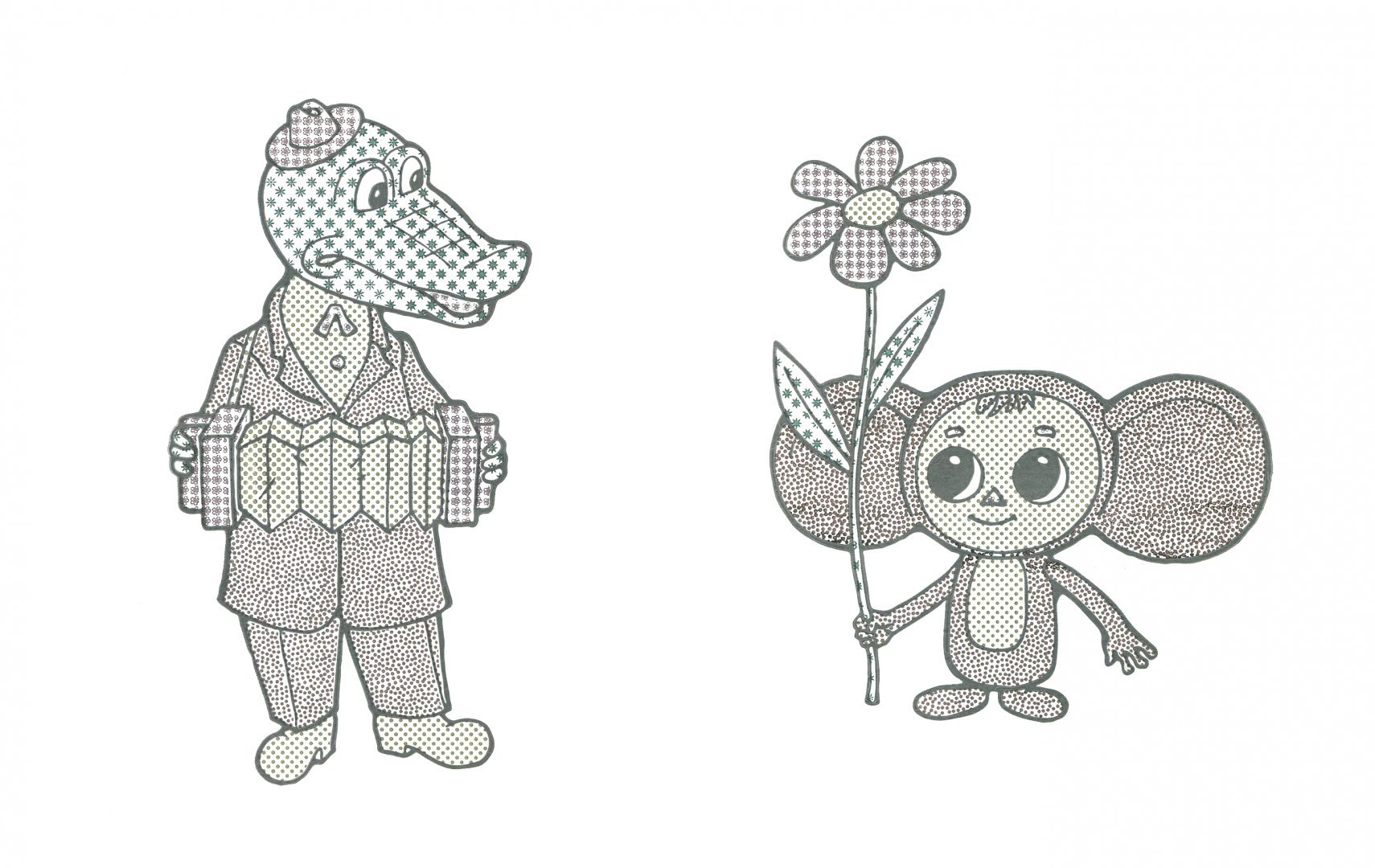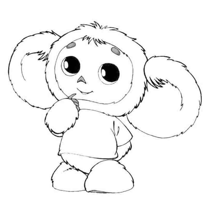 ![Чебурашка и крокодил Гена раскраски для детей]()