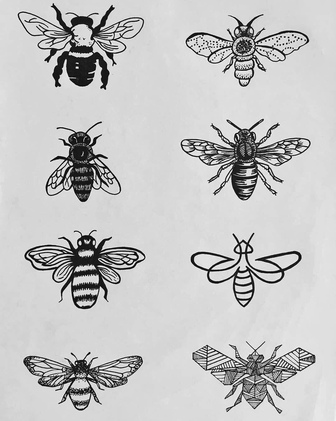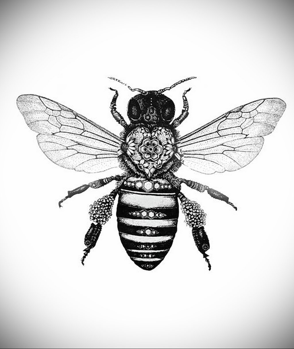 ![Тату пчела эскиз]()