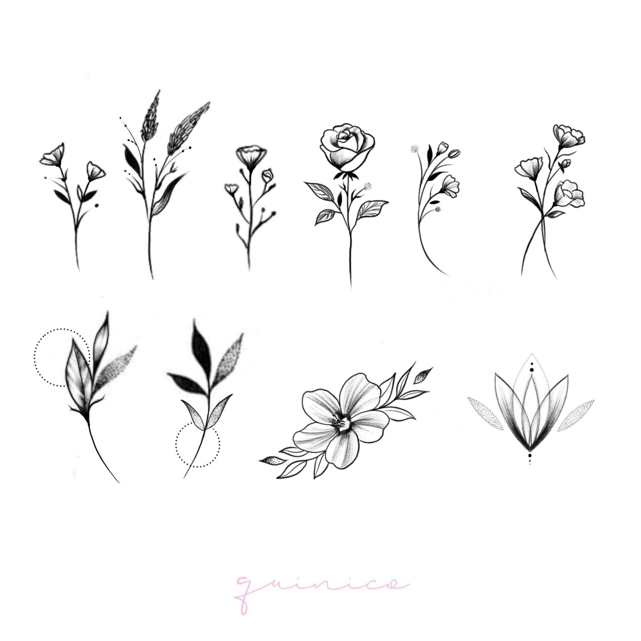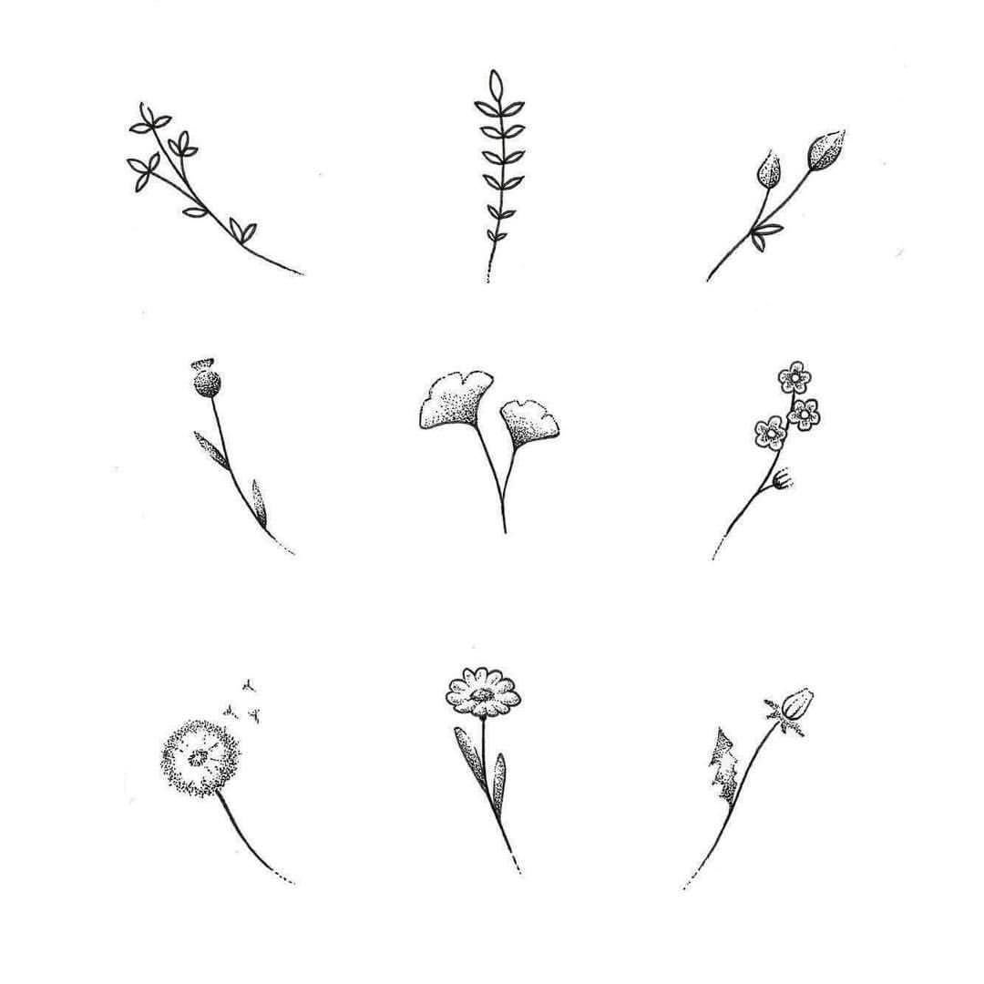 ![Маленькие цветы эскизы тату]()