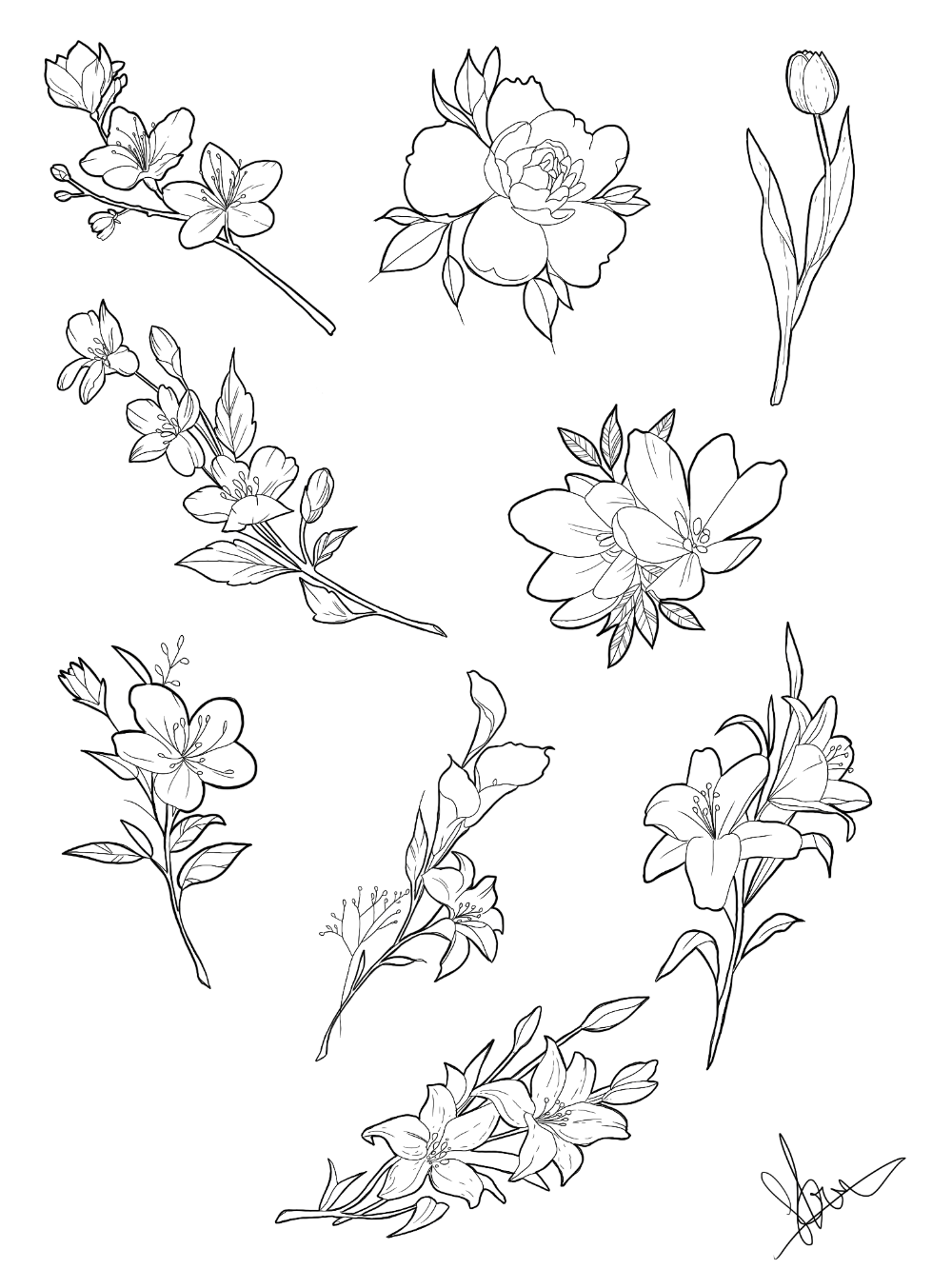 Эскизы тату цветы Минимализм