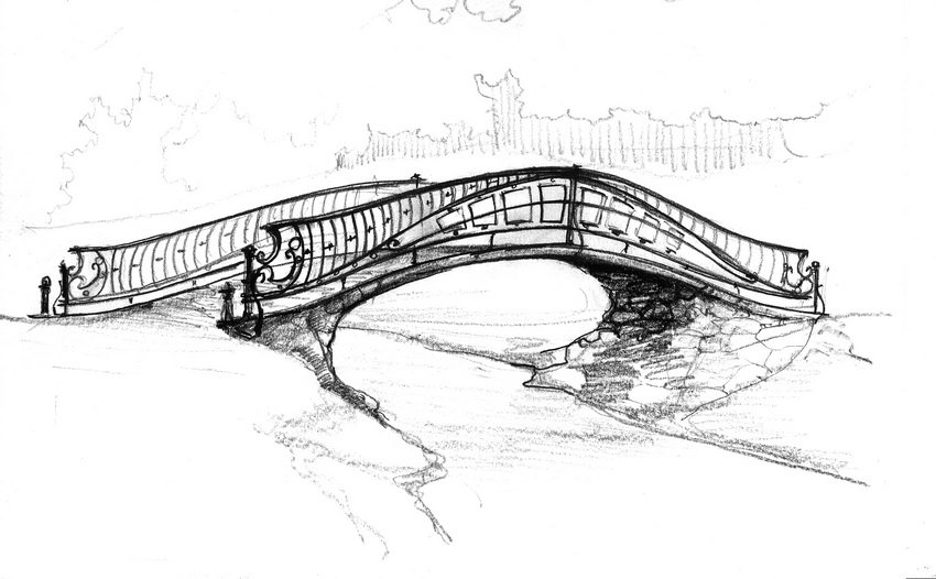 Эскиз моста через реку