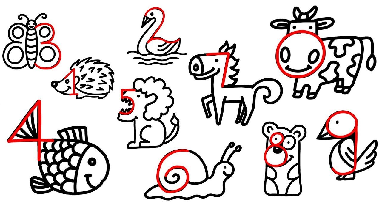 Рисование из цифр животных для детей