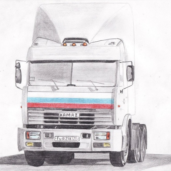 ![КАМАЗ рисунок карандашом]()