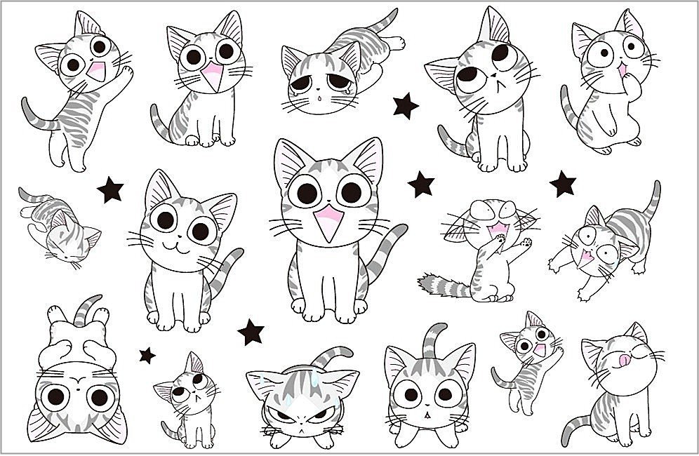 ![Кавайные наклейки котики]()