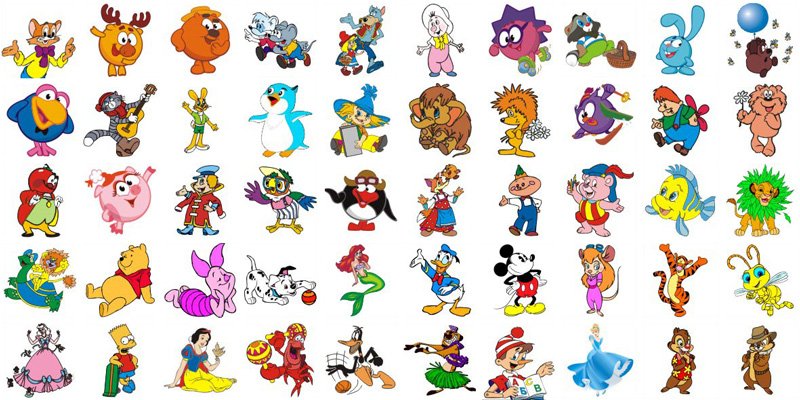 ![Персонажи мультфильмов на одном листе]()