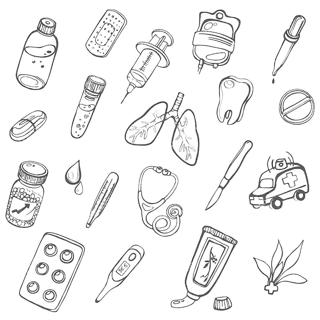 Медицинские принадлежности раскраска
