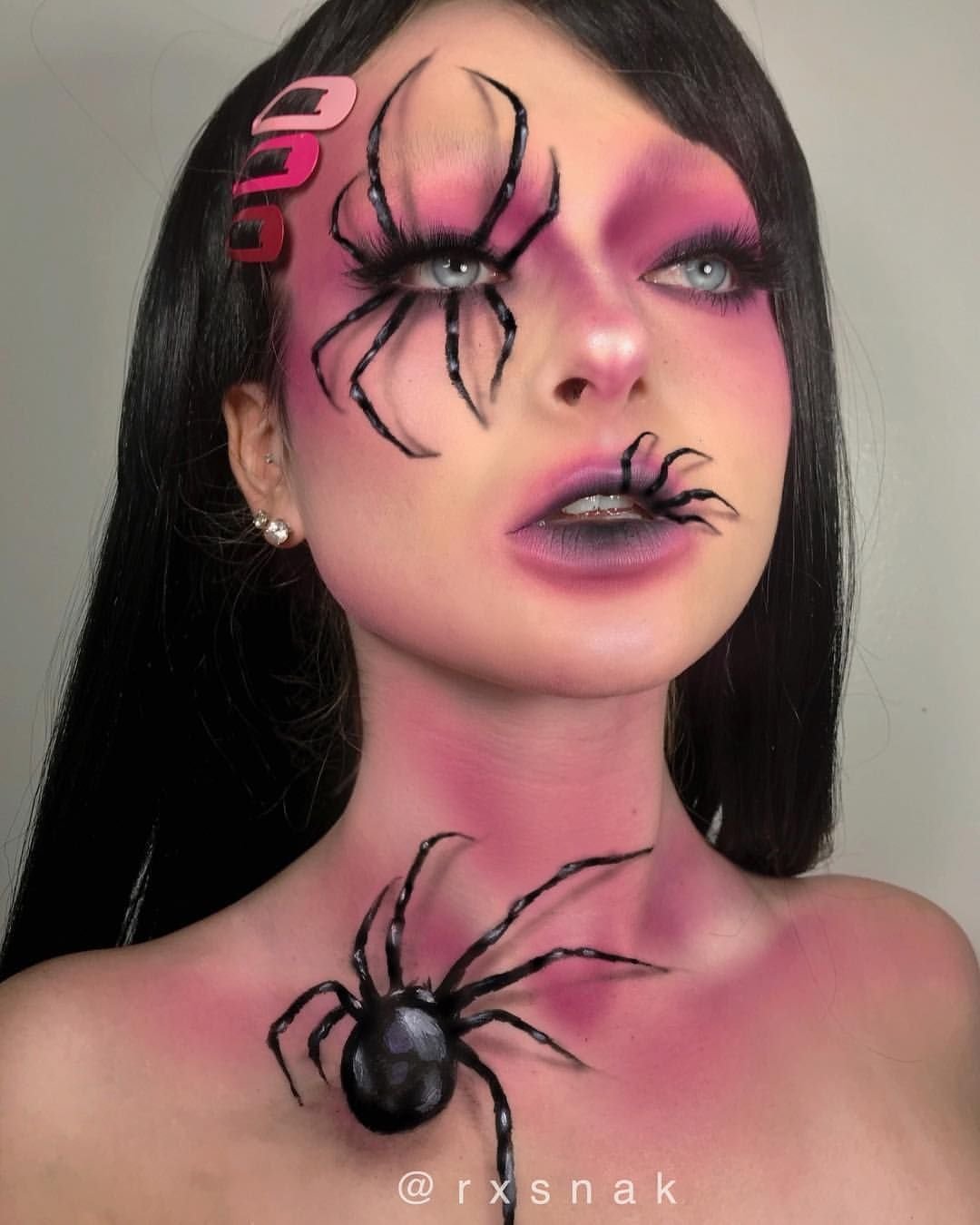 ![Аквагрим паук на лице]()