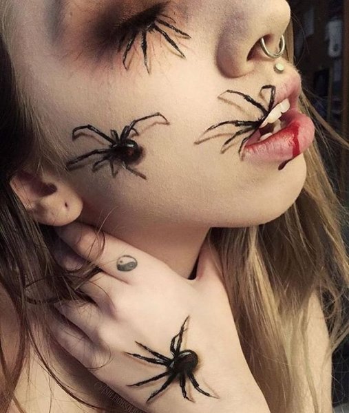 ![Макияж паука на Хэллоуин легкий]()