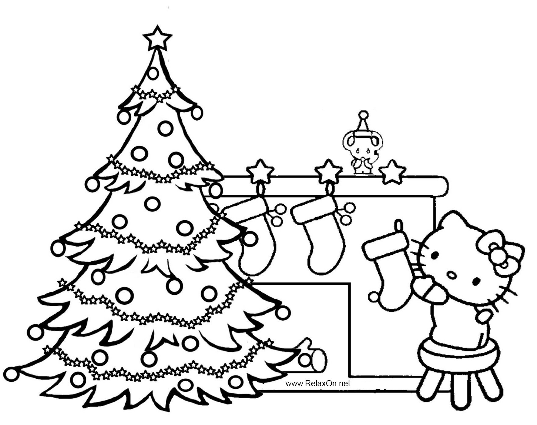 ![Раскраска Хелло Китти новый год]()