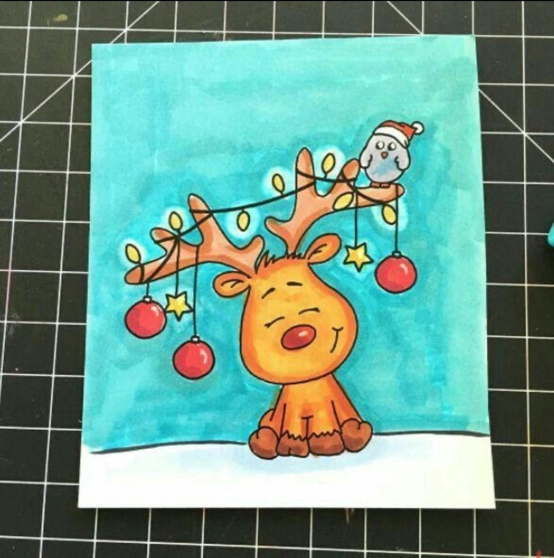 ![Новогодний олень рисунок для срисовки]()