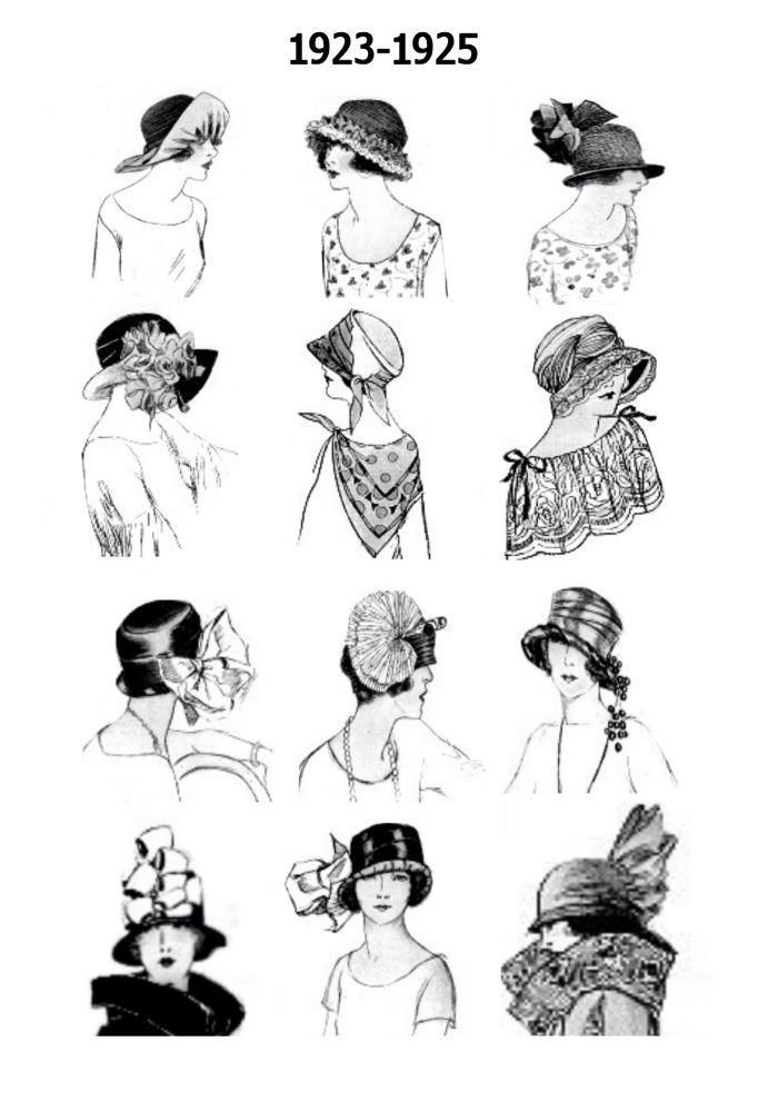 ![Наброски причесок и шляп]()