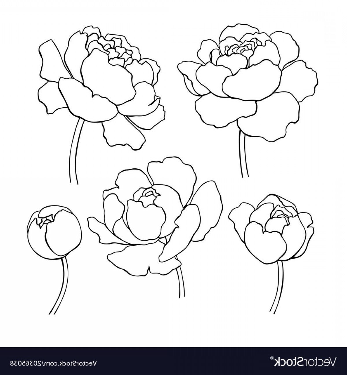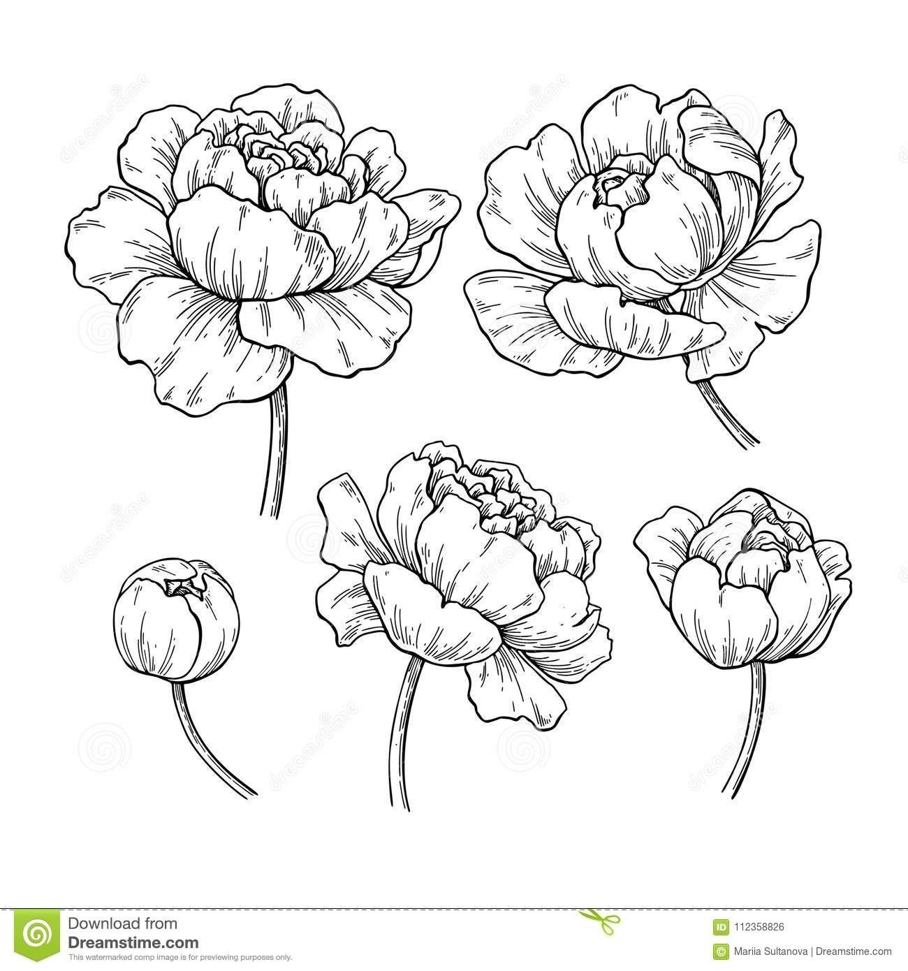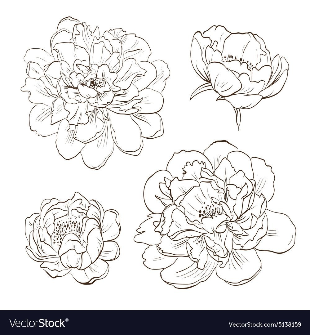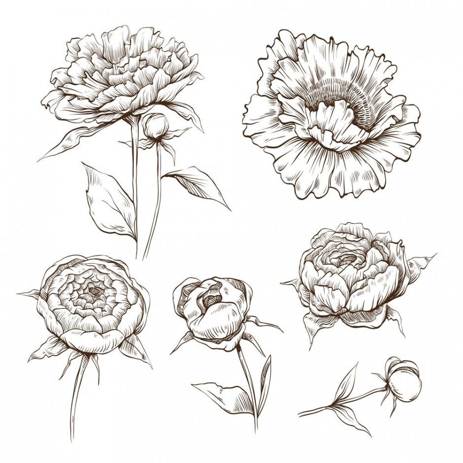 ![Пионы эскиз контурные]()