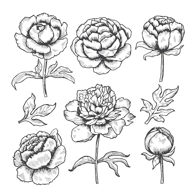 Скетч пионов