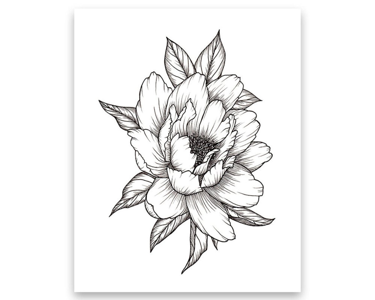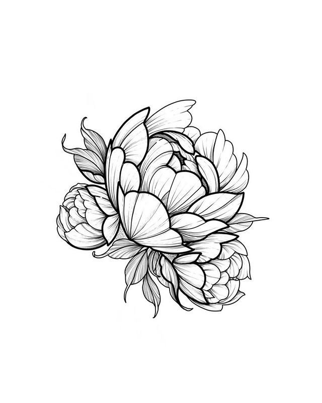 ![Пион эскиз тату контур]()