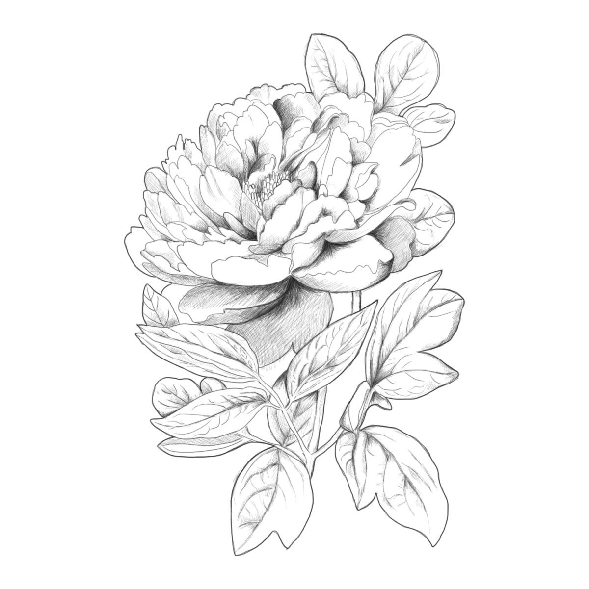 ![Скетч пионов]()