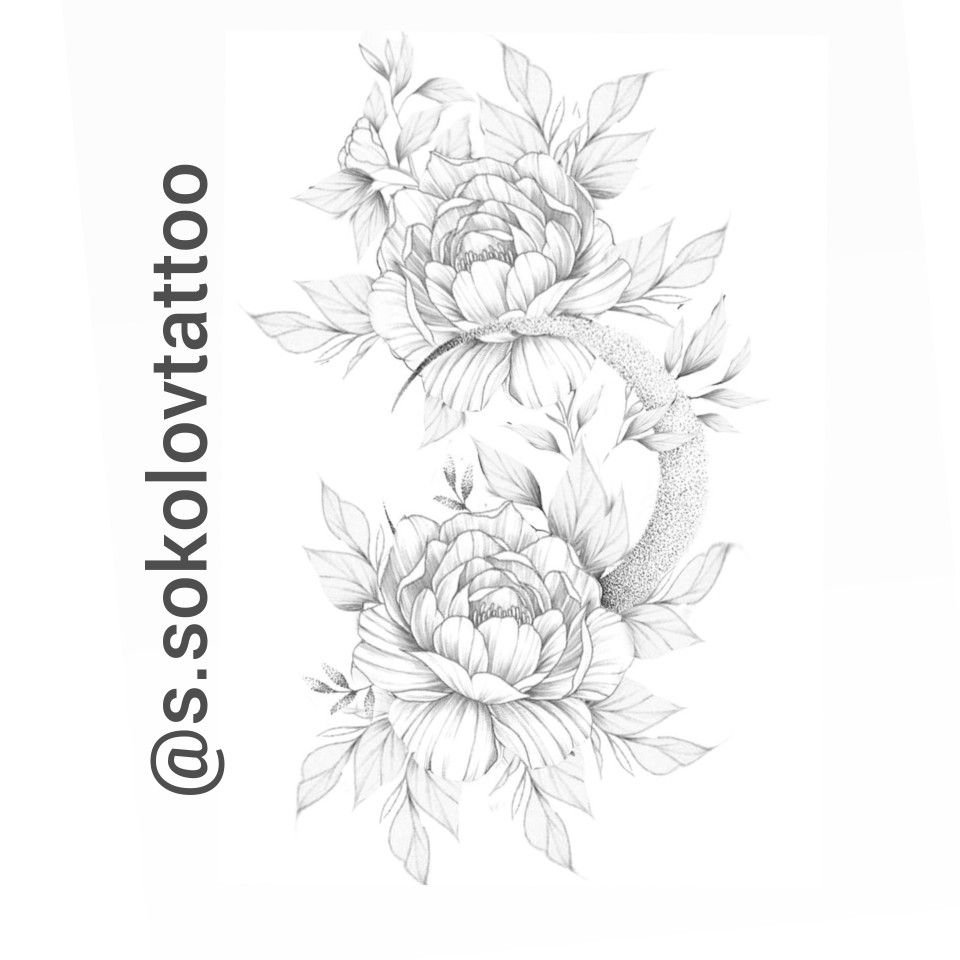 ![Тату пионы лайнворк эскизы]()
