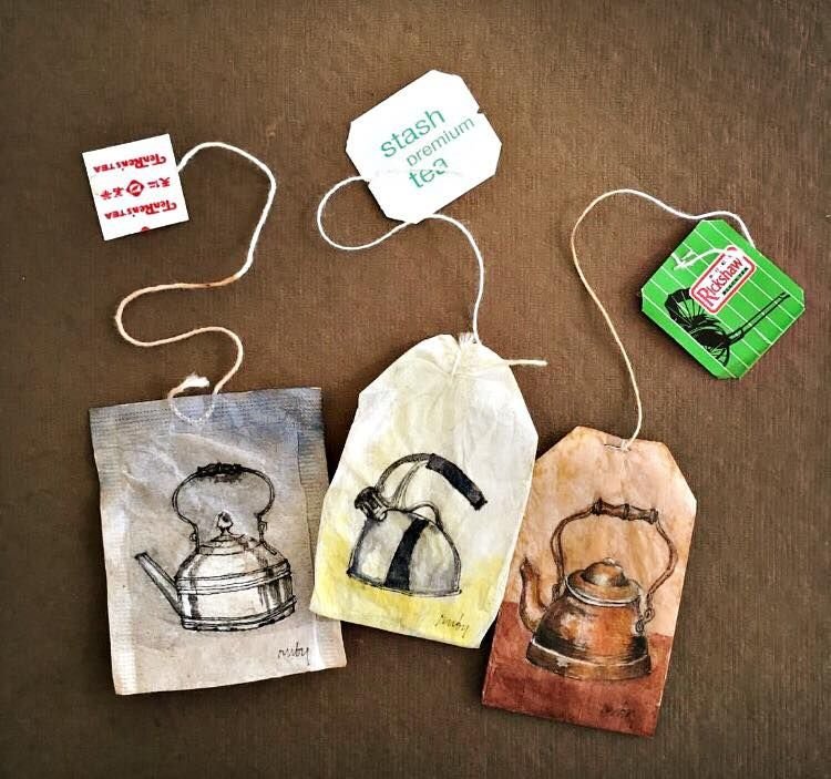 ![Рисунки на чайных пакетиках]()