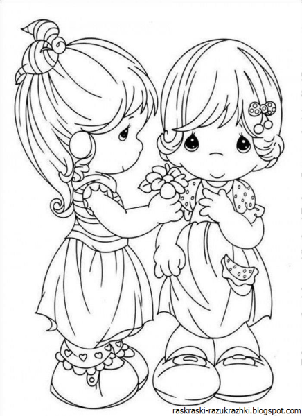 Раскраска девочки подружки маленькие