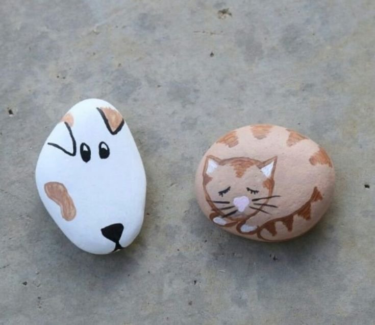 Роспись камней котики акриловыми красками