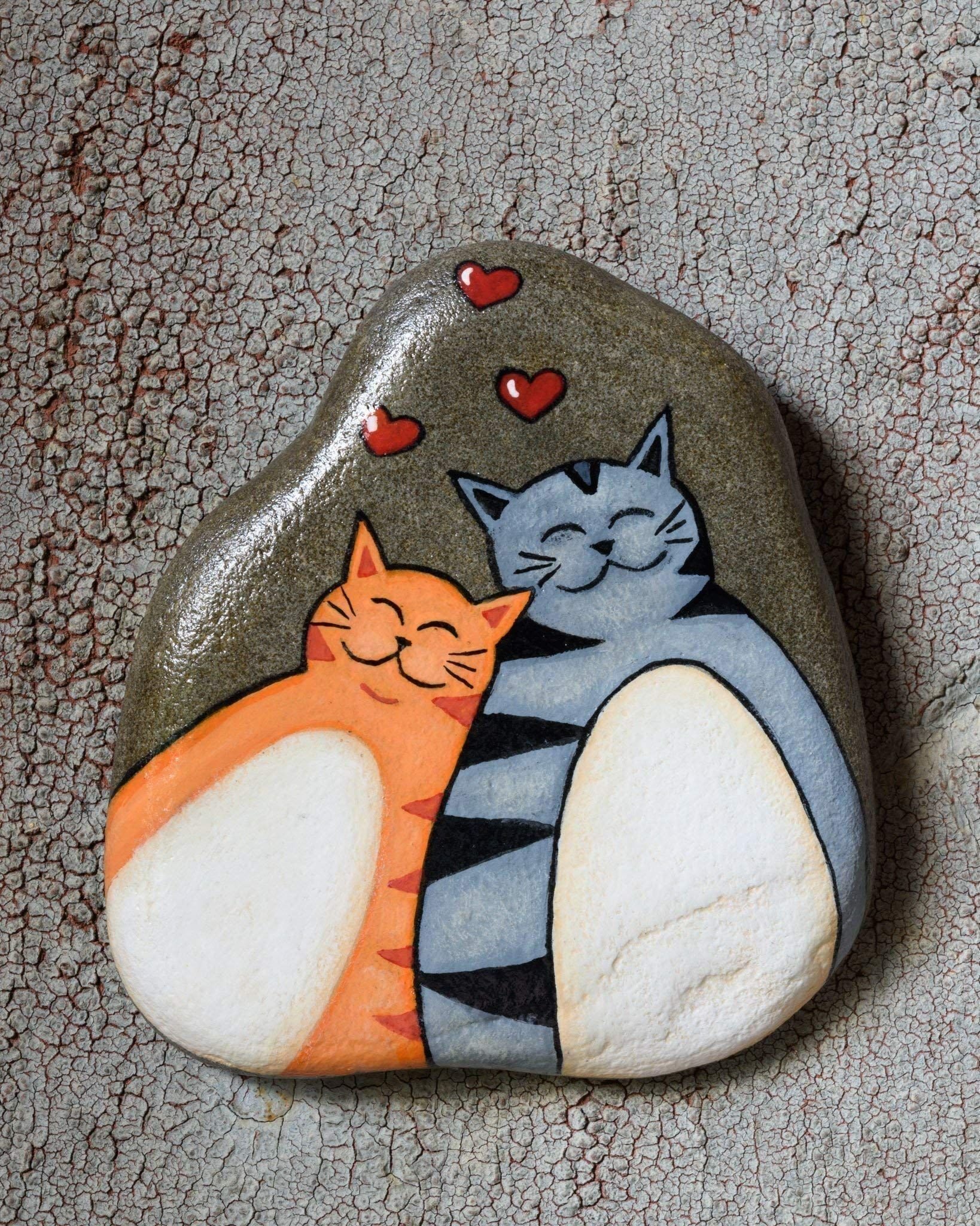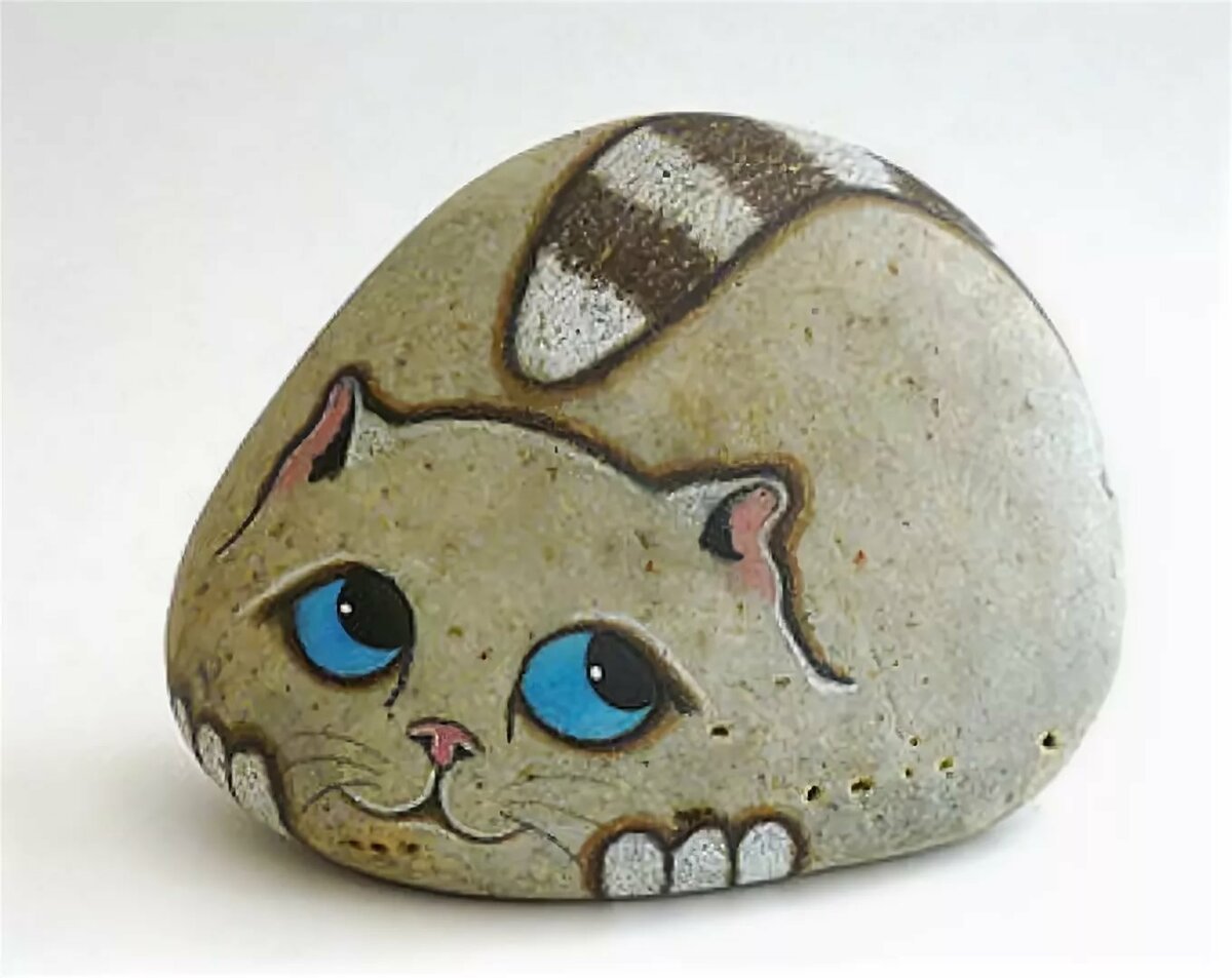 ![Роспись камней акриловыми красками кошки]()