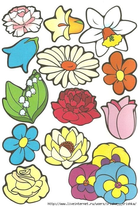 ![Цветы для вырезания цветные]()