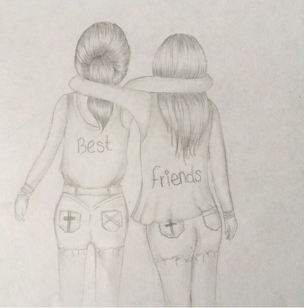 ![Рисунки подруги карандашом для срисовки]()
