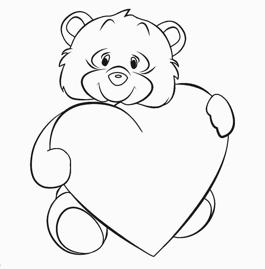 ![Раскраска медведь с сердцем]()