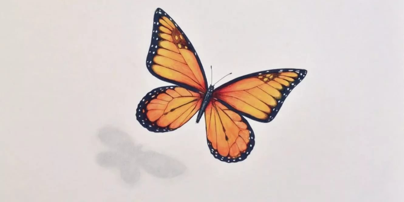 Бабочка рисунок карандашом цветной
