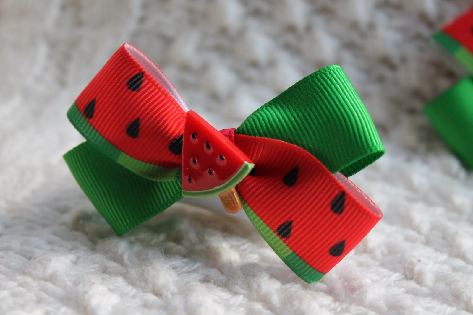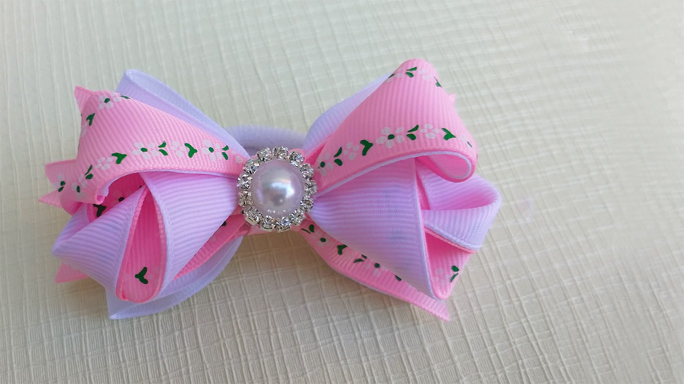 ![Бантики из репсовых лент с рисунком]()