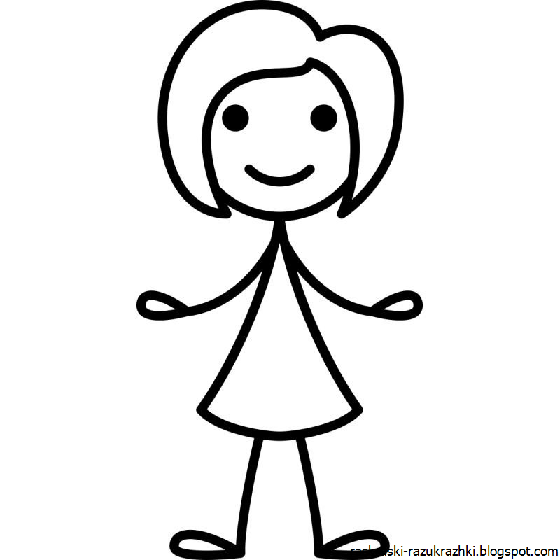 ![Схема рисования девочки для детей]()