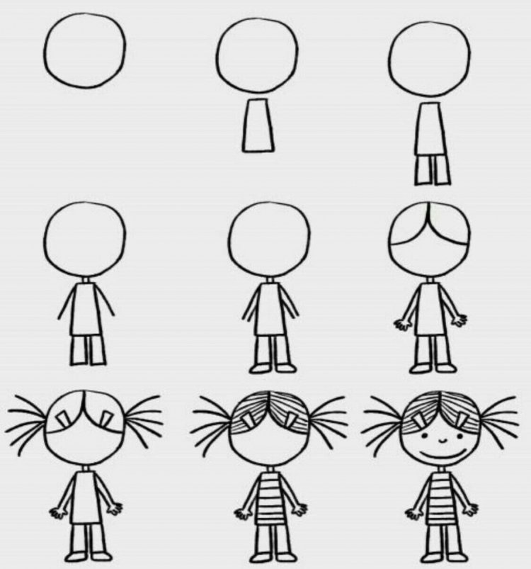 Схема рисования девочки для детей
