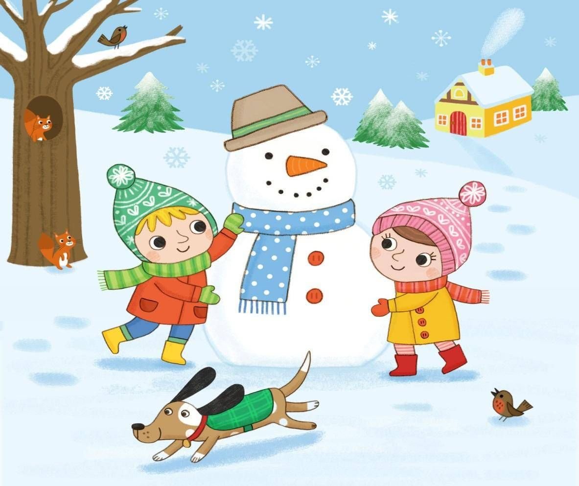 ![Дети зимой иллюстрации]()