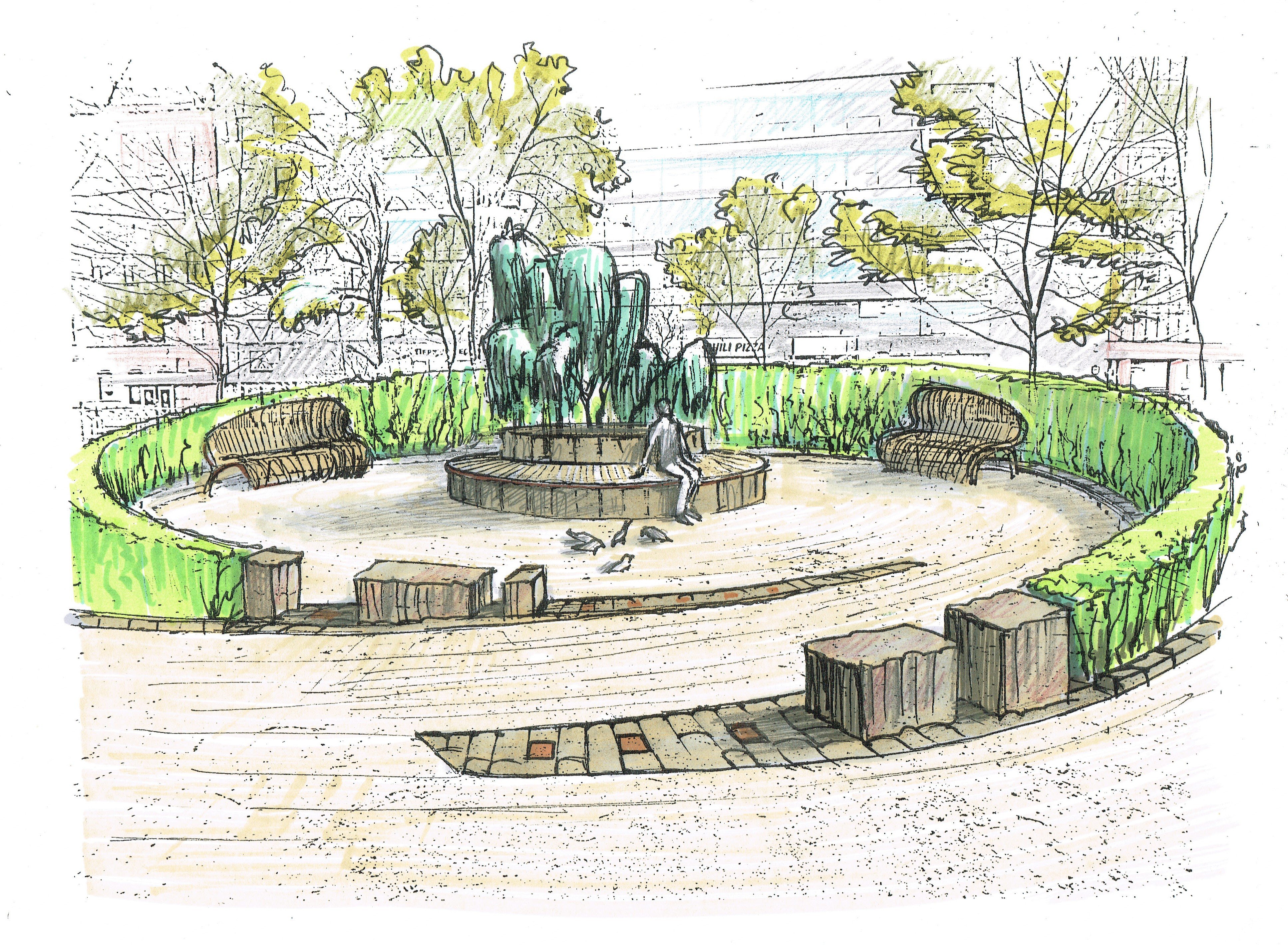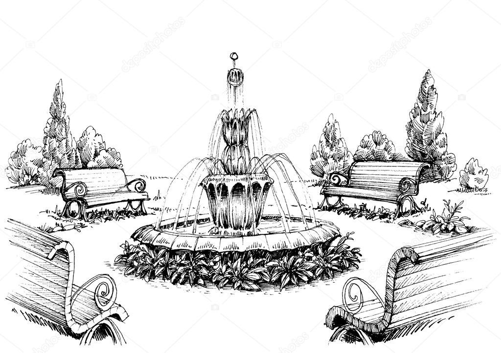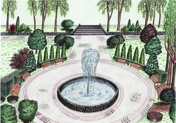 ![Эскиз фонтана в парке]()