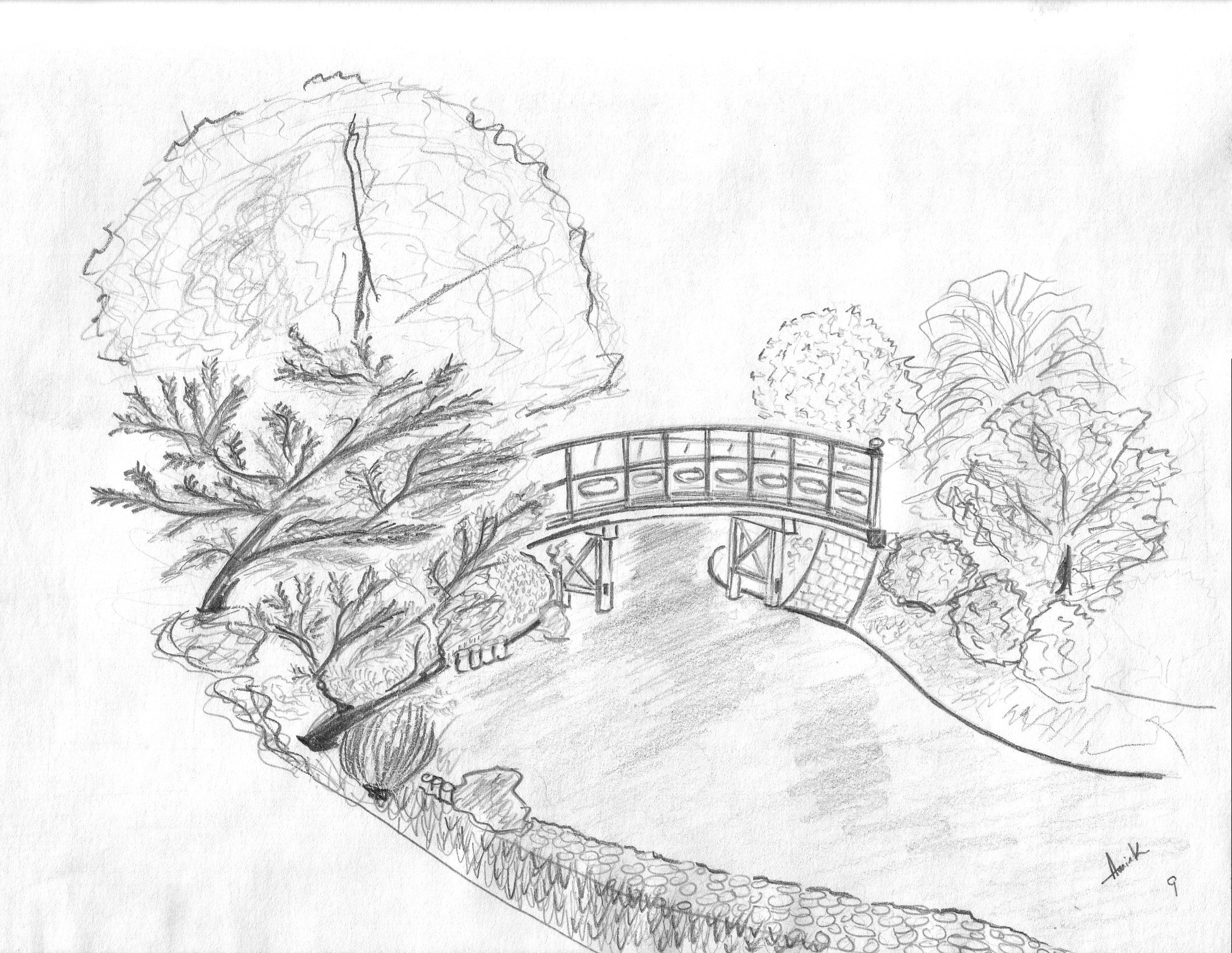 ![Рисунок парка карандашом]()