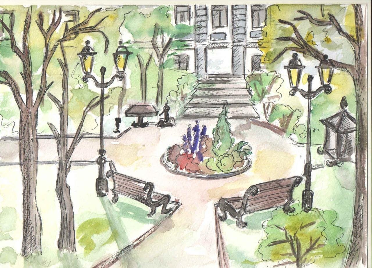 Рисунки парков и скверов карандашом