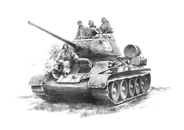 ![Танк т-34 с танкистом]()