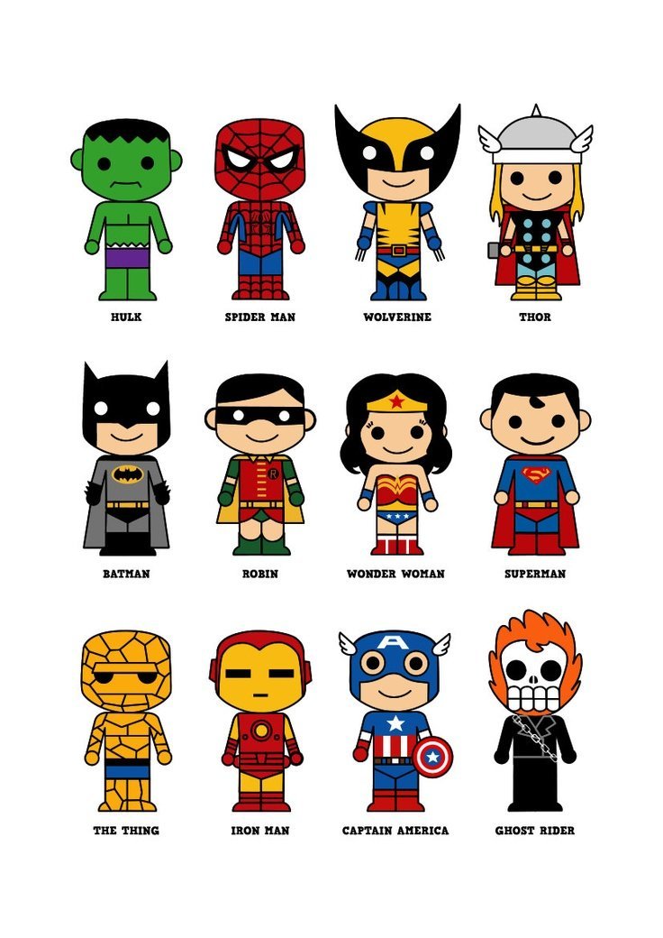 ![Мини рисунки супергероев]()