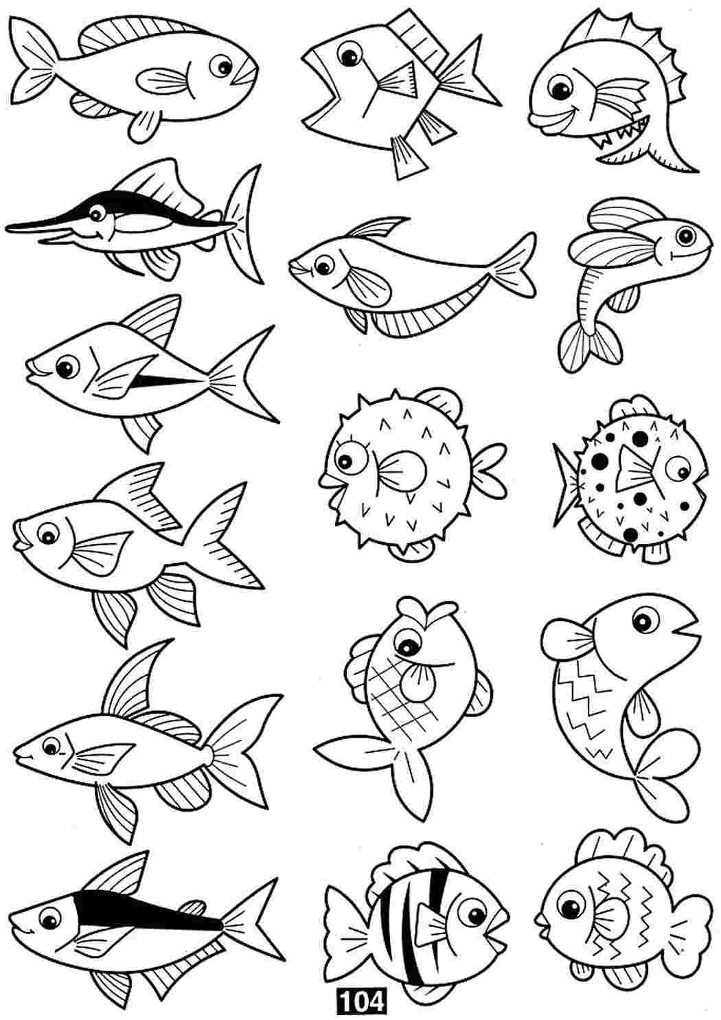 ![Рыбки для раскрашивания детям]()