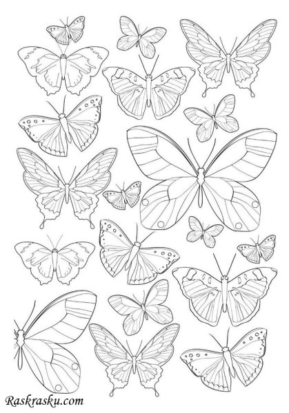 Маленькие бабочки раскраска