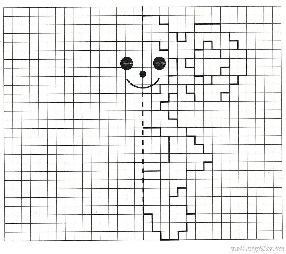 Симметричное рисование по клеточкам для детей 7-8 лет
