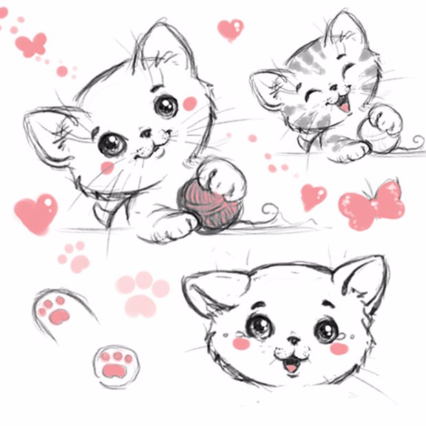 ![Кошки маленькие рисунки]()