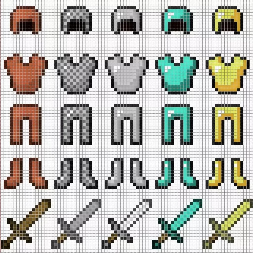 ![Предметы из МАЙНКРАФТА по клеточкам]()