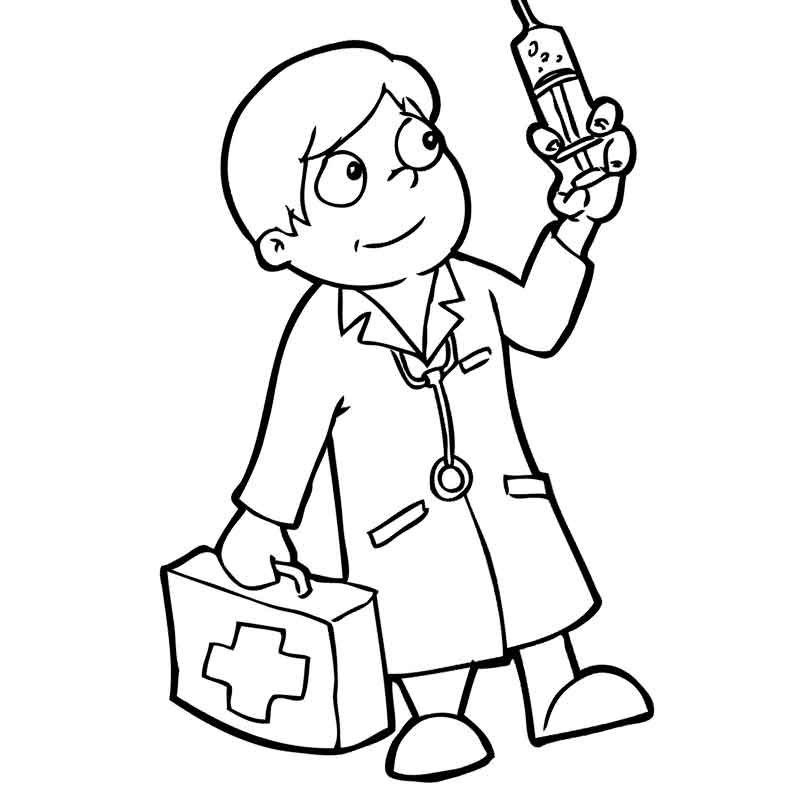Раскраски доктор и укол для детей