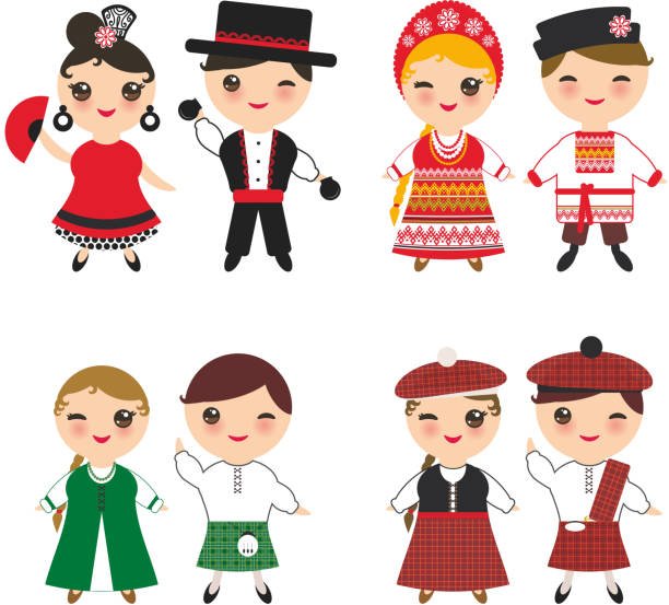 ![Векторные дети в национальных костюмах]()