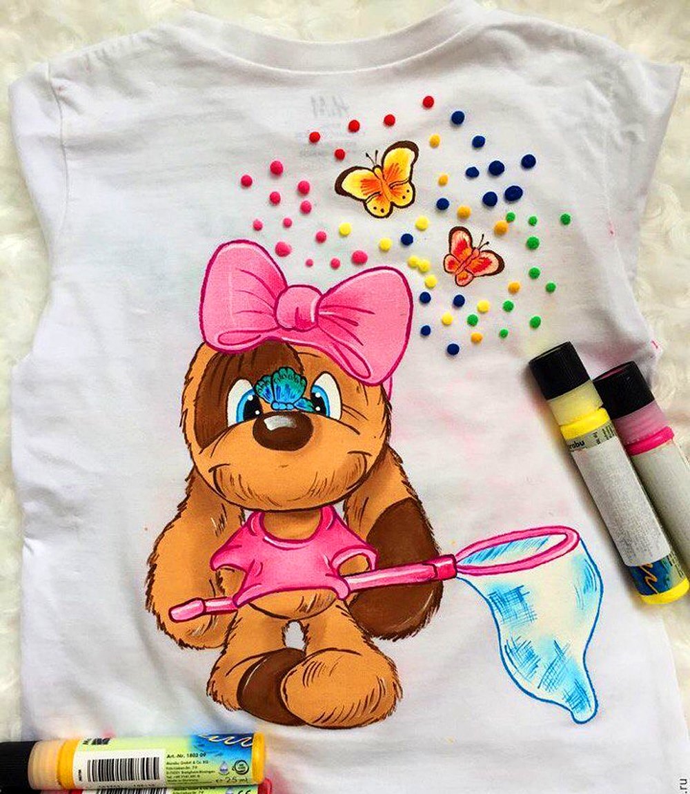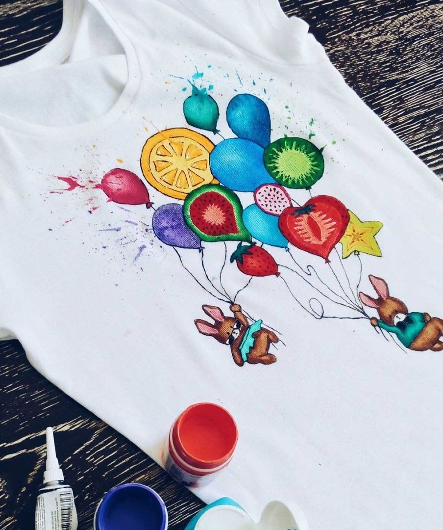 ![Рисунки на футболках акриловыми красками современные]()