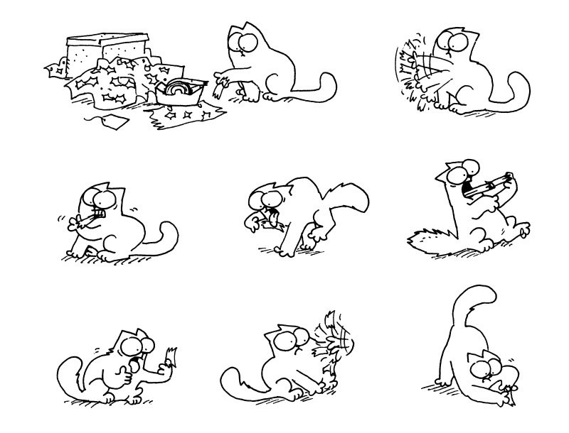 ![Мультяшные коты в разных позах]()