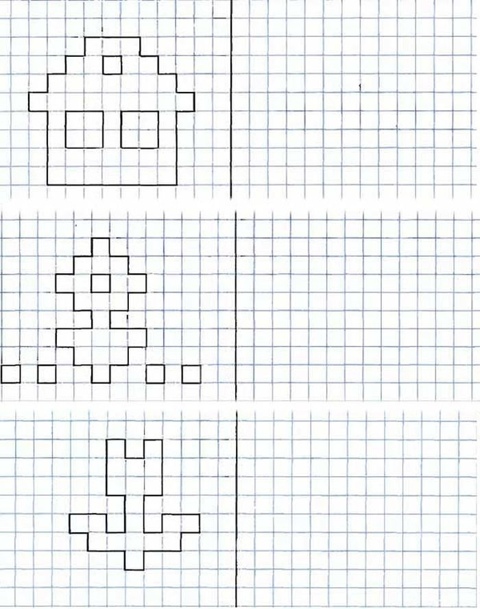 ![Рисование по клеточкам в тетради]()