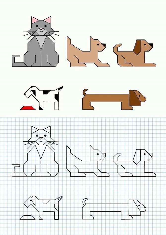 ![Рисование по клеточкам в тетради для начинающих]()