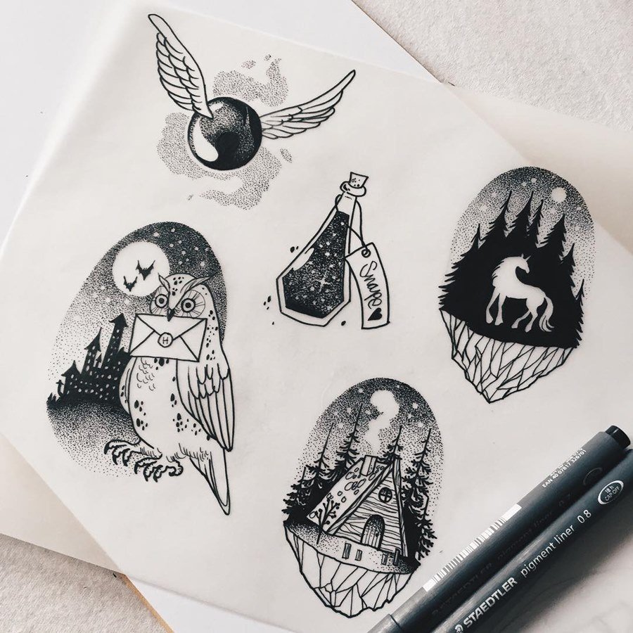 Гарри Поттер скетч тату