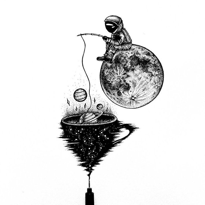 Тату космос эскизы черно белые